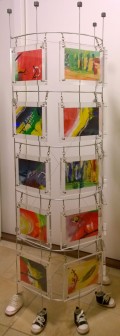 Displaystativ med 15 akrylglasrammer med hver 2 akrylbilleder i. Billederne kan vendes efter lyst.